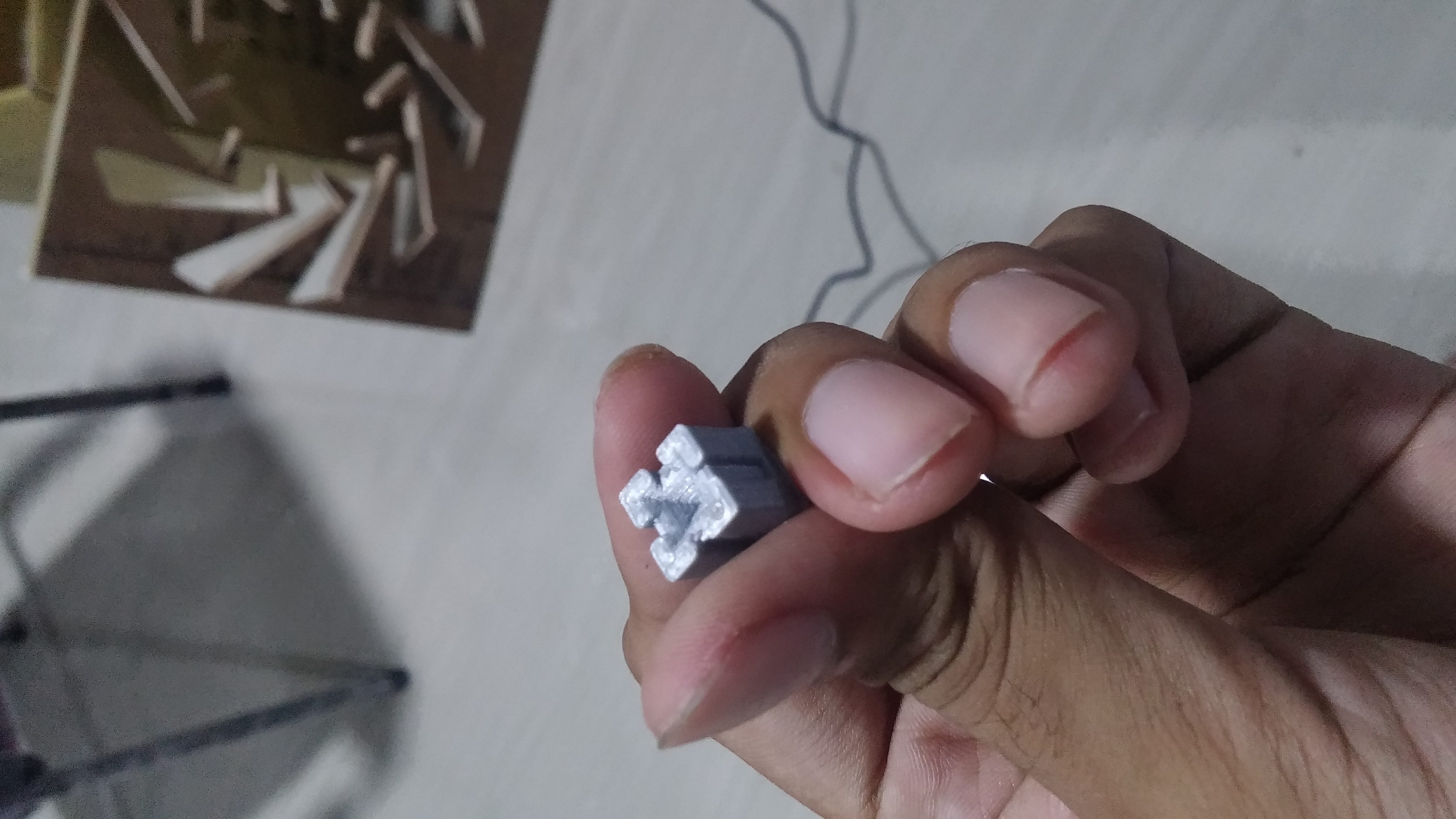 The cutstudio file is printed usiing the vinyl cutter on a 15mm X 15mm vinyl sheet piece. After an approximate cut time of 30 seconds, the cut piece of the protoype was obtained.