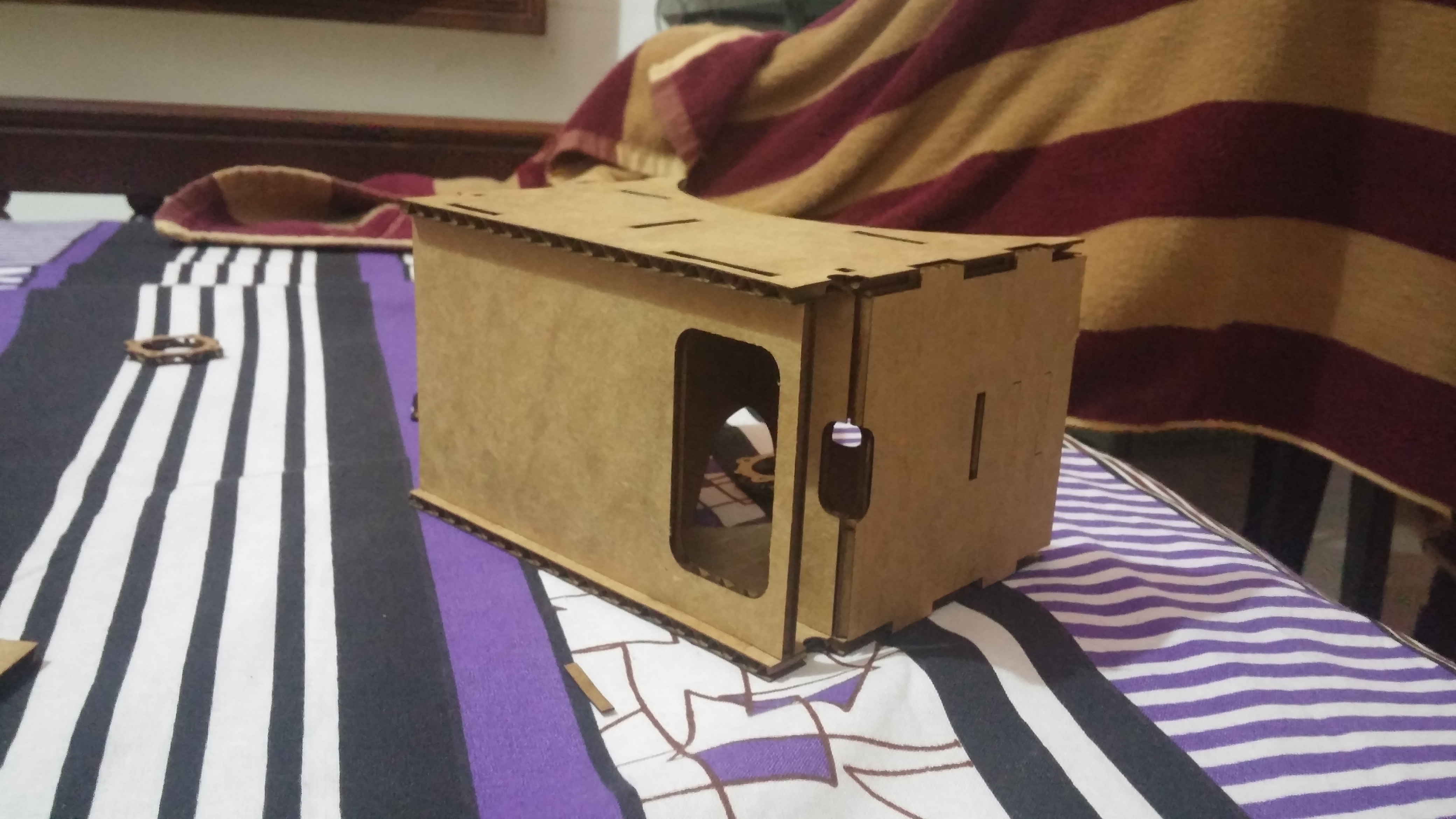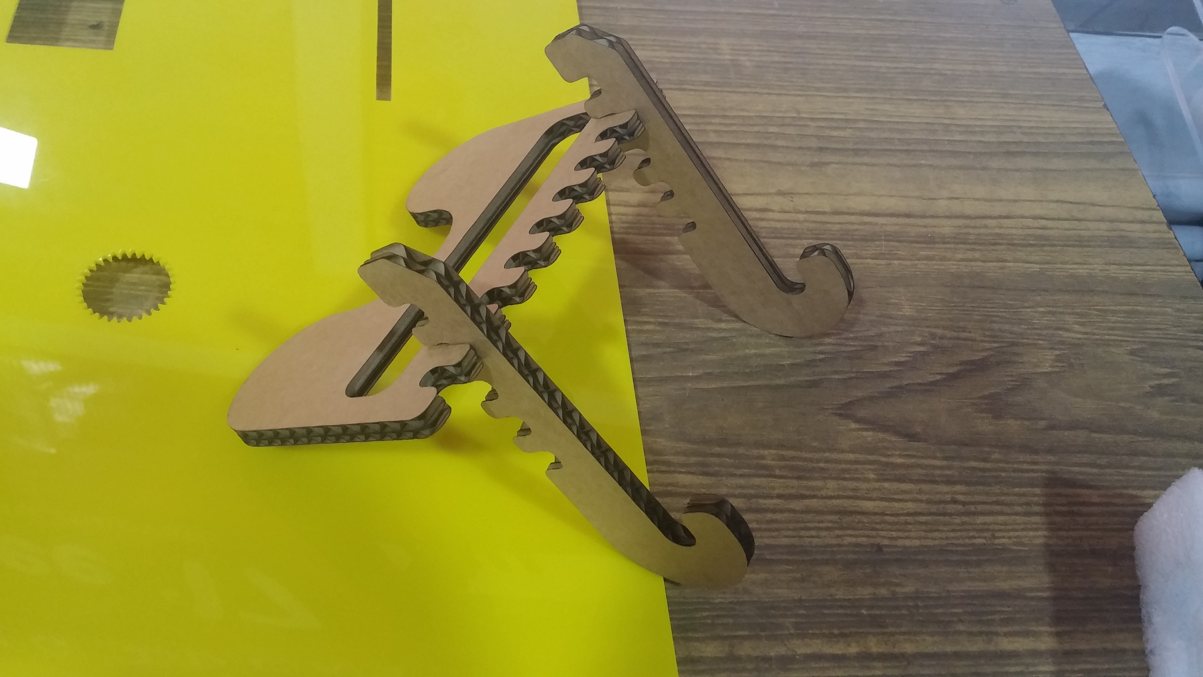 The .3dm file is printed using the laser cutter on a 6mm thick cardboard under 100% power. After an approximate cut time of 2 minutes, the cut piece of the protoype was obtained.