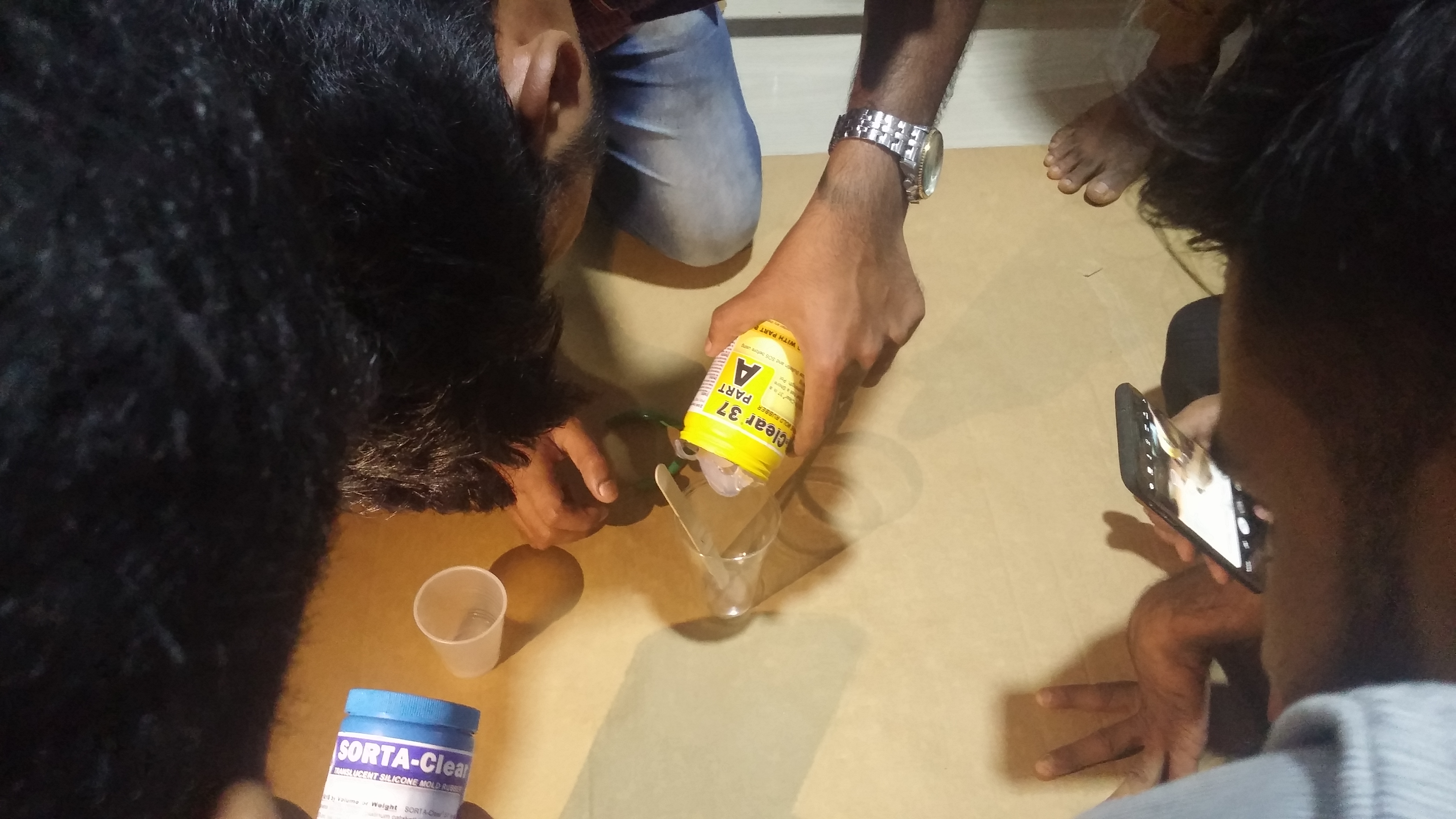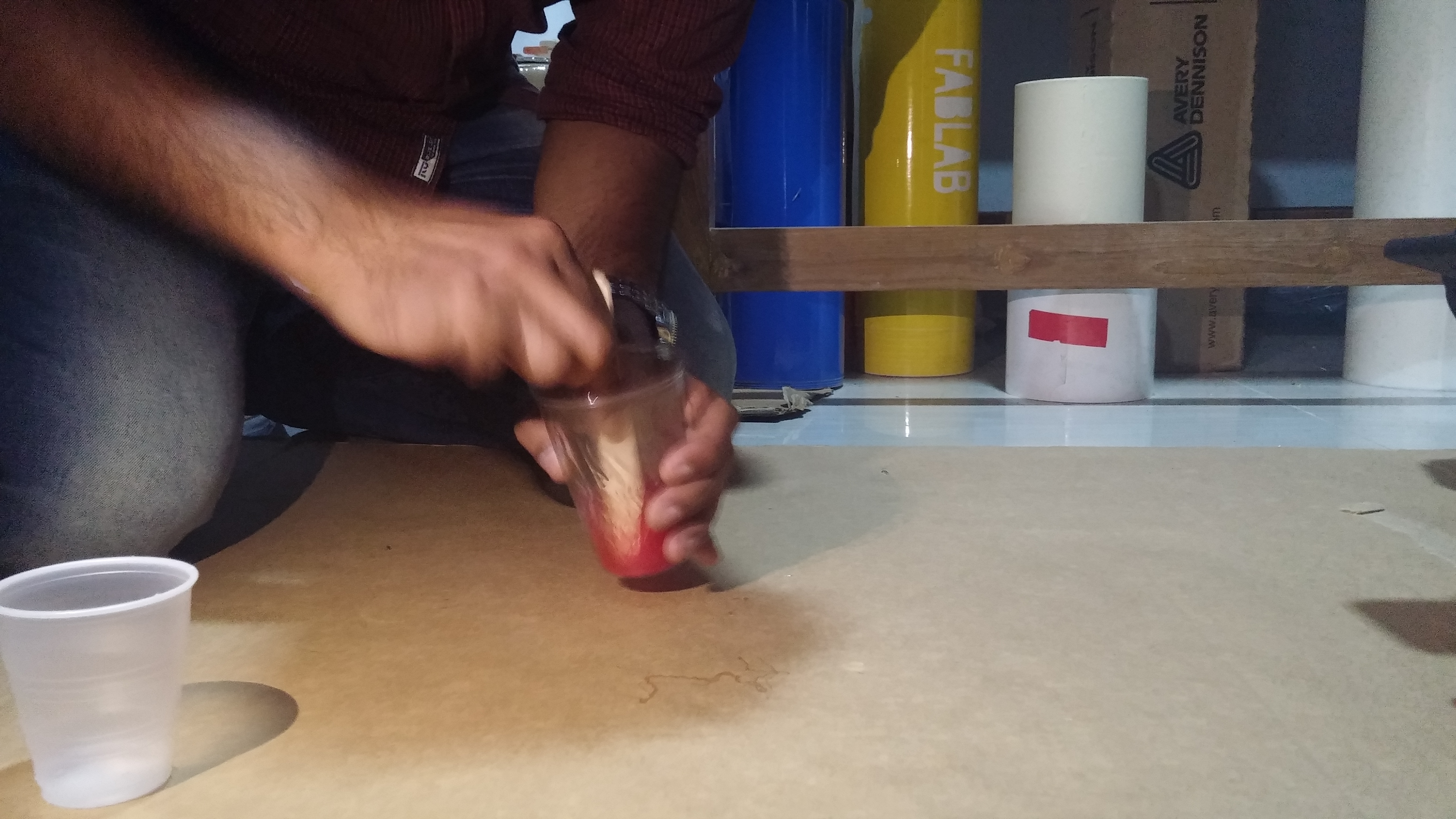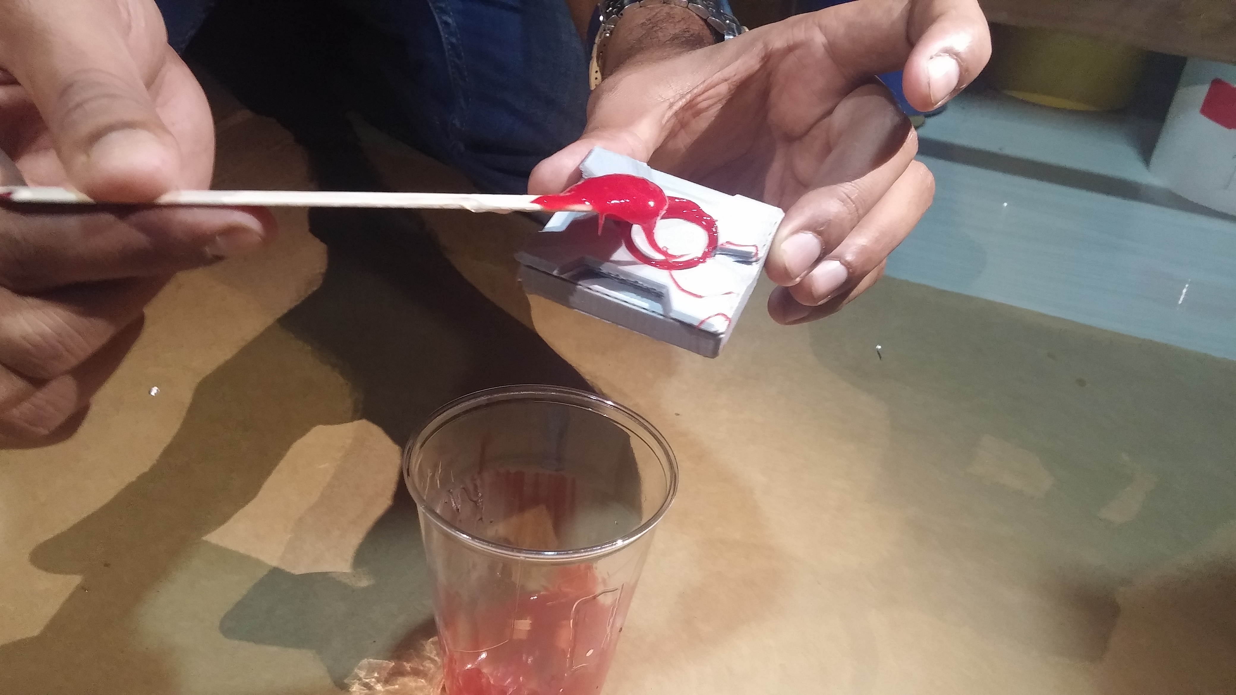 The part A and part B of the silicone gel was mixed together thoroughly and 2 drops of red colour was added.