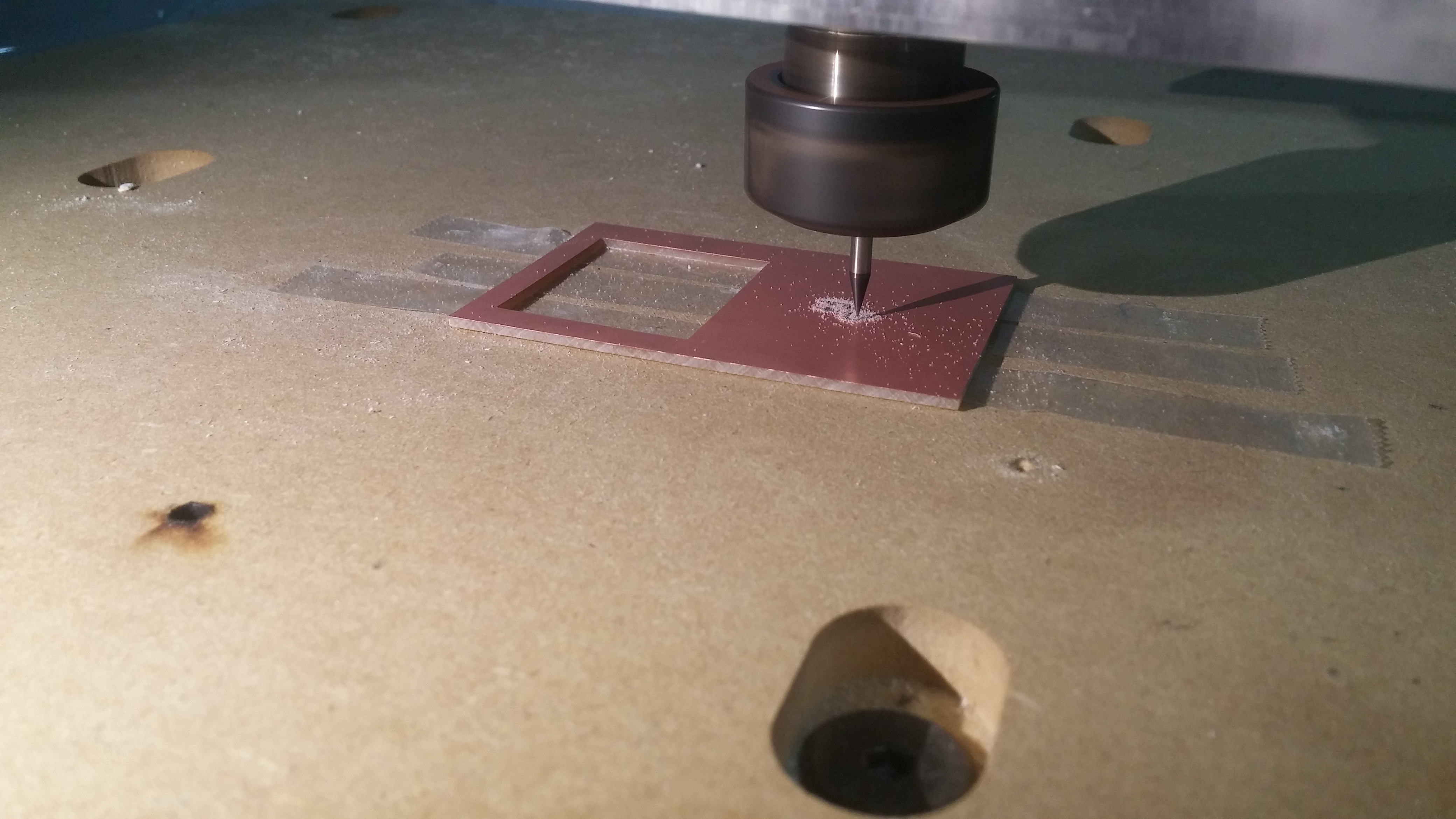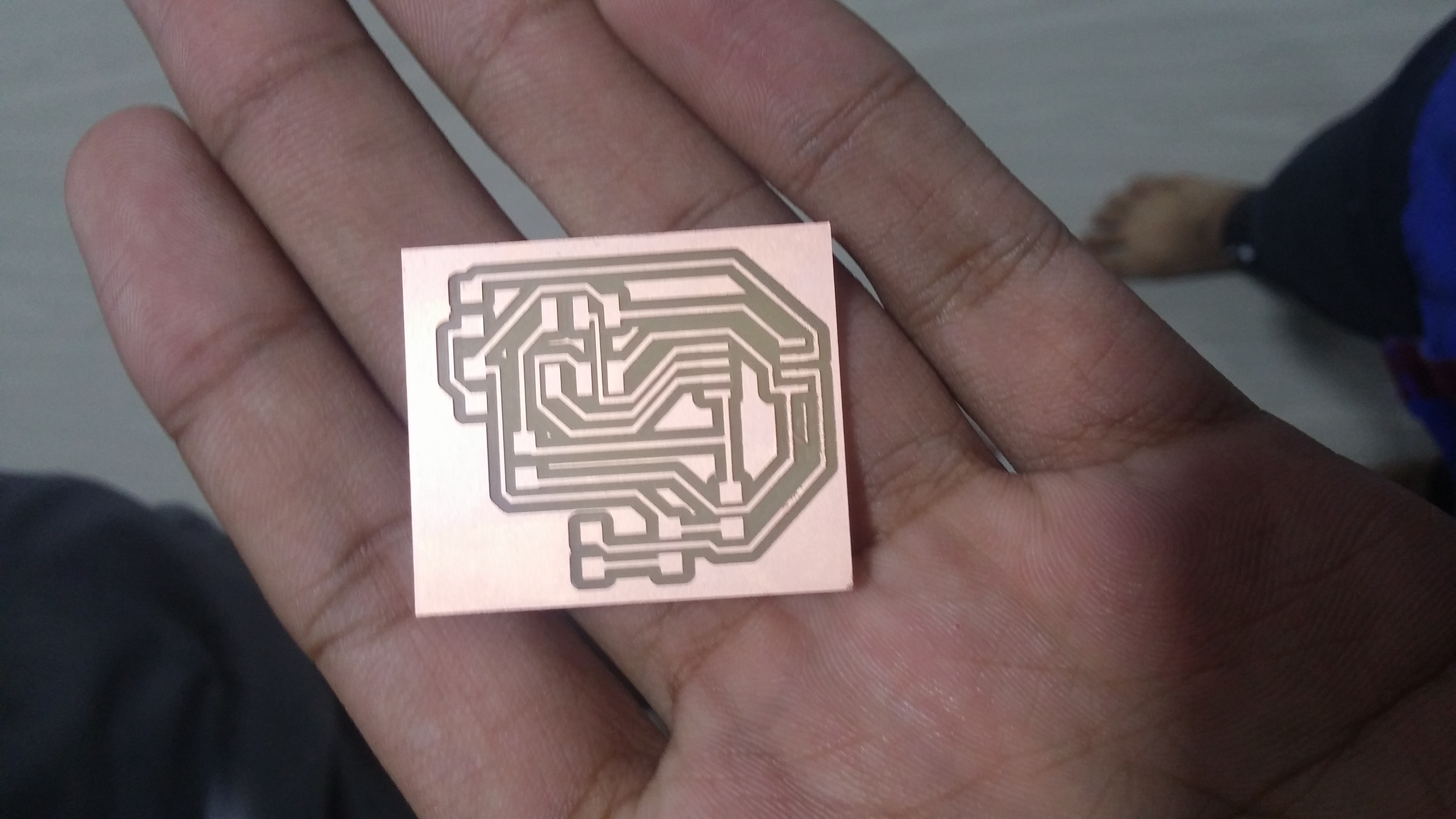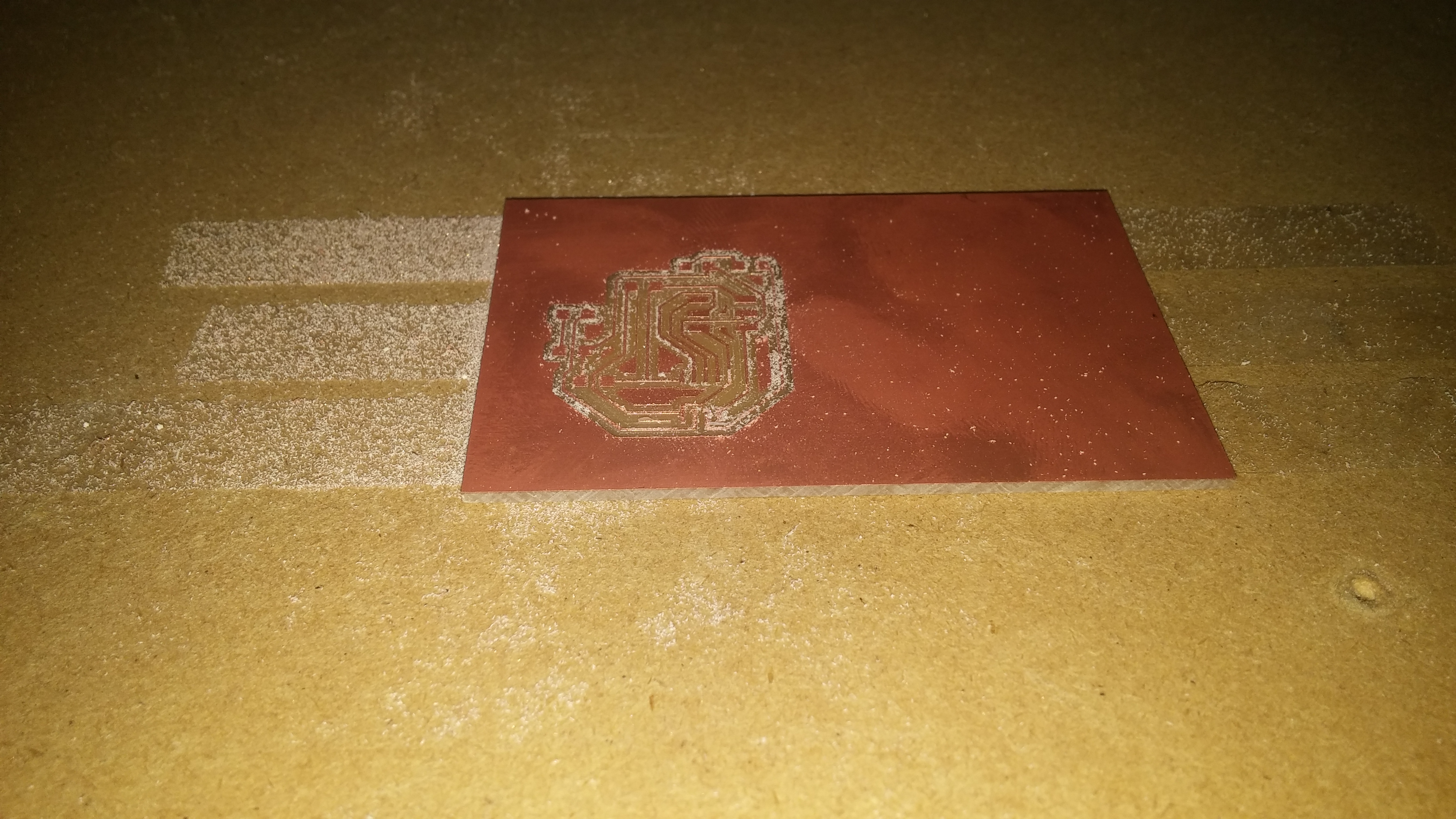 The processed gcode of the PCB design is milled using Shopbot CNC machine.