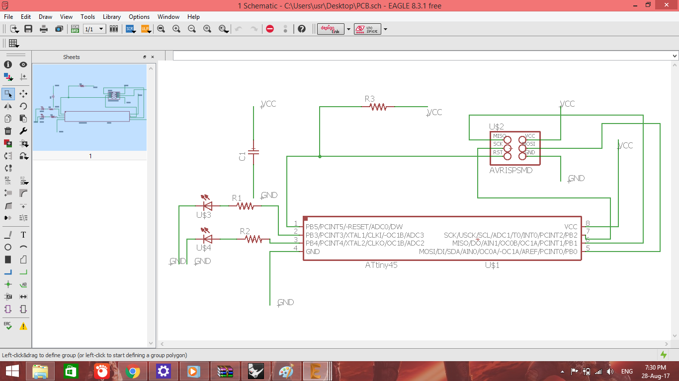 THe designed circuit is routed using the autoroute feature in Autodesk Eagle
