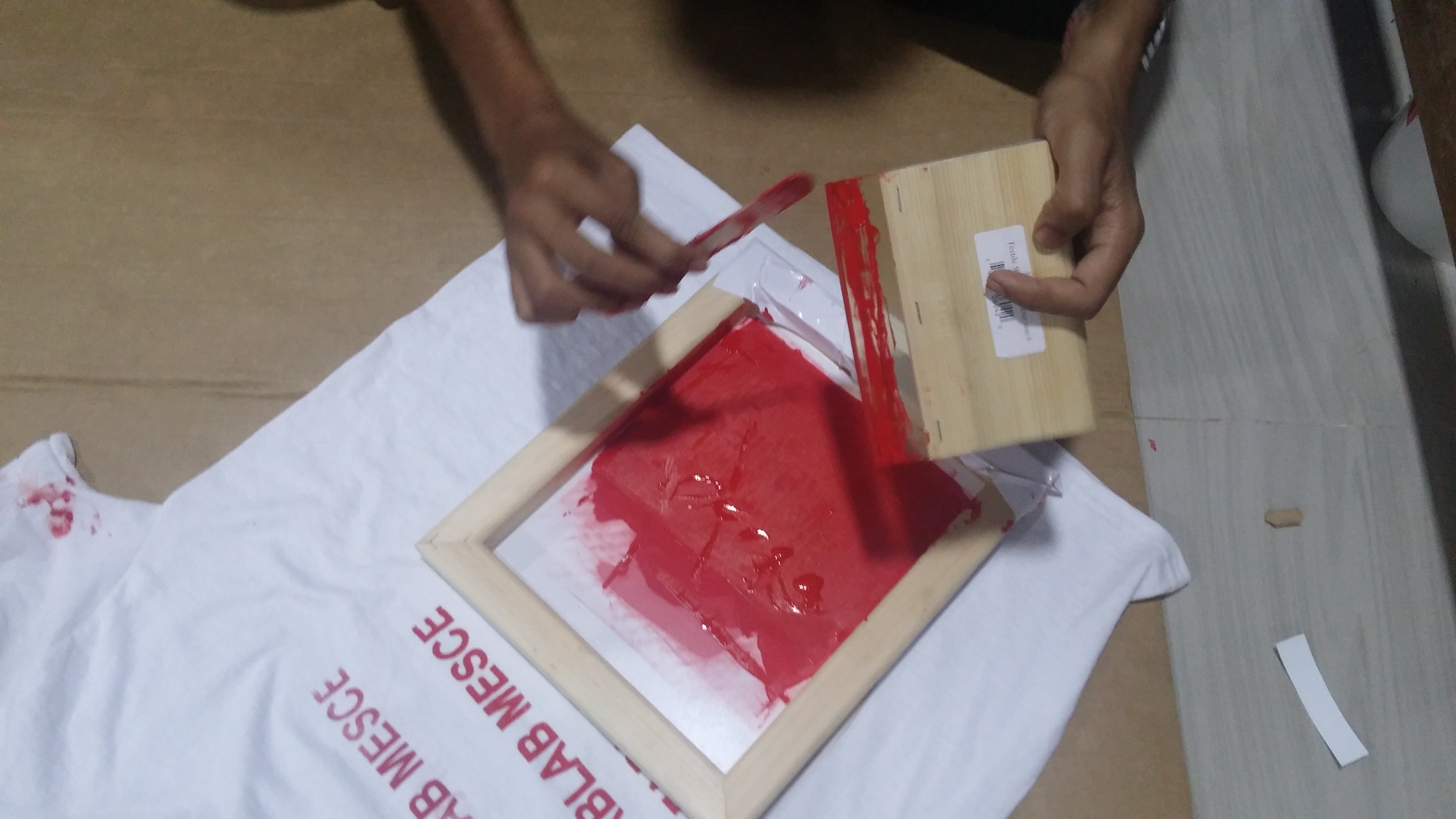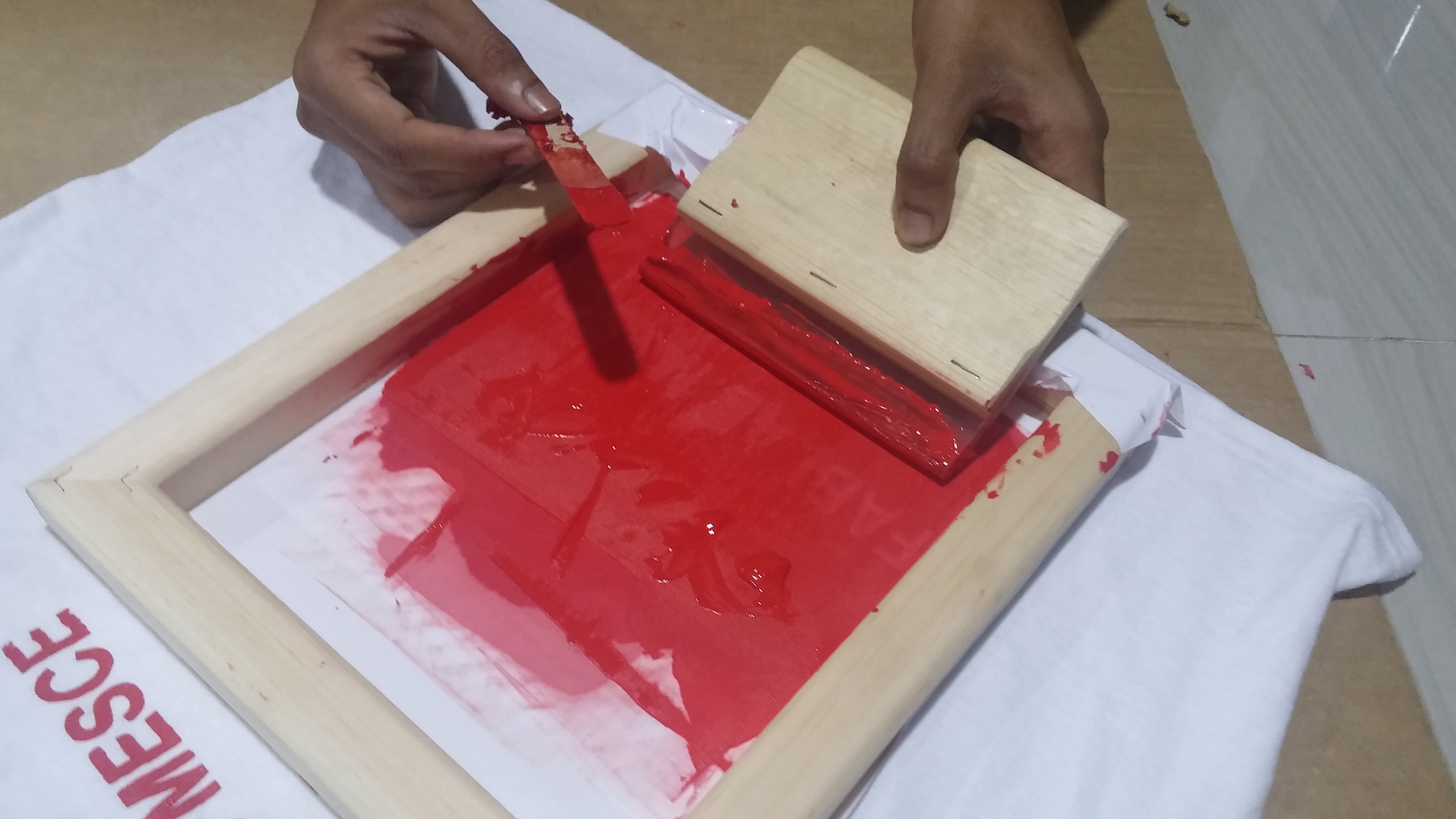 The printing paint was wiped onto the tshirt using printing wiper.